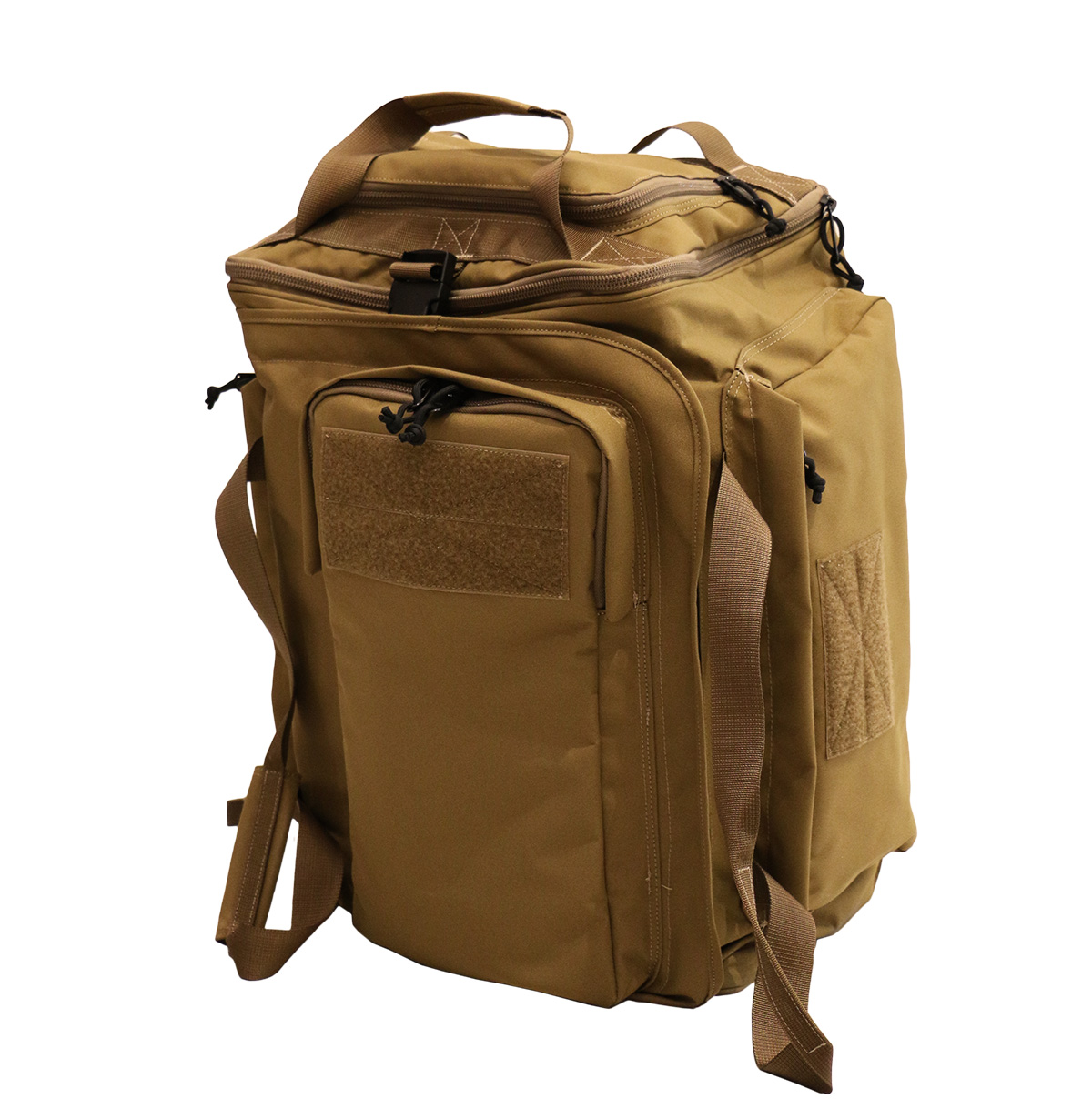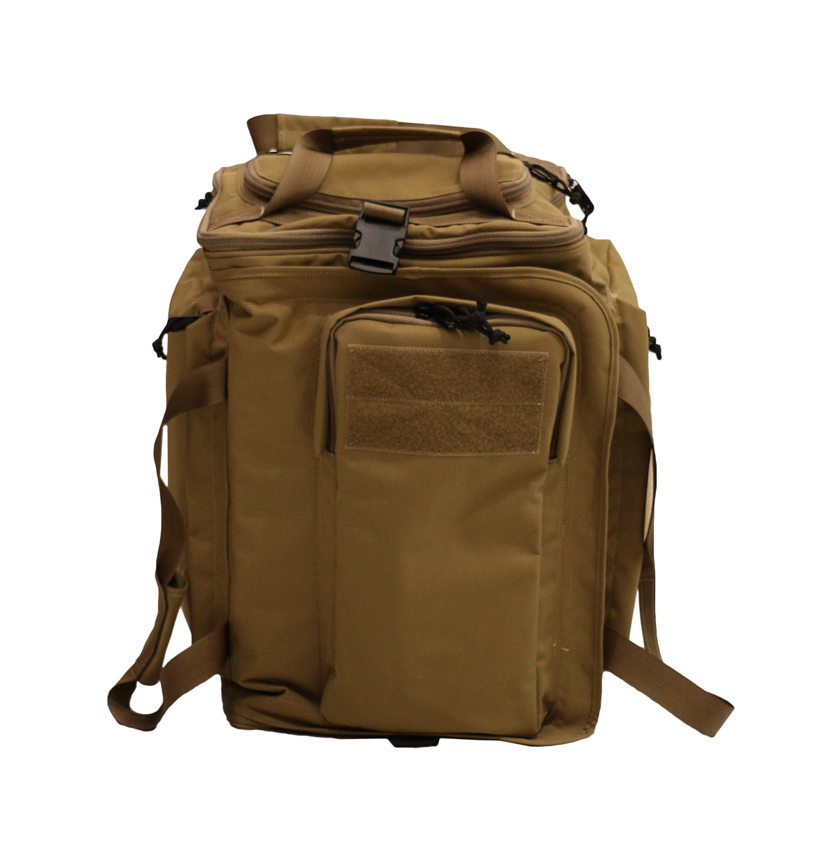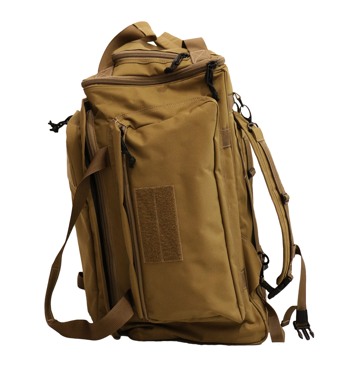 The large-capacity tactical backpack can store all kinds of mission supplies. There are large attached pockets on both sides and the top cover, the side is equipped with a retractable zipper to increase the capacity.